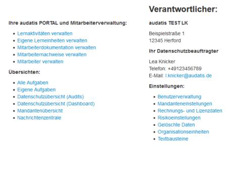 und eine Verarbeitungstätigkeit angelegt wird, heißt nun „Risikoeinstellungen“. - Die Einstellungen befinden sich nun rechts unter den Informationen des Datenschutzbeauftragten:
